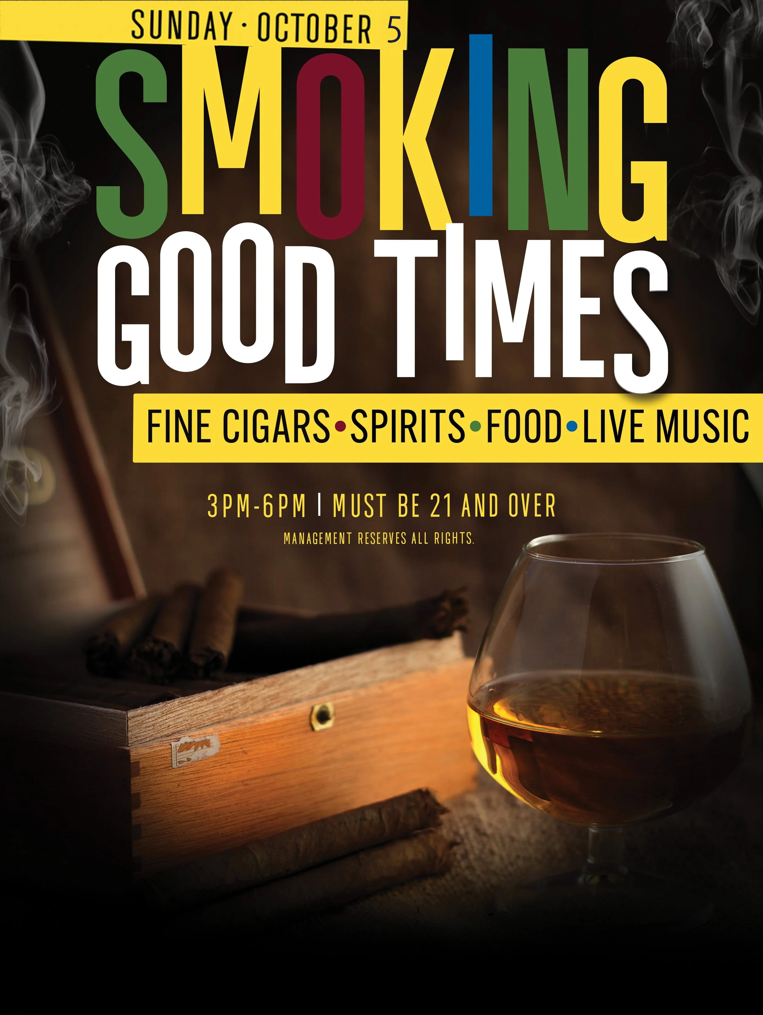 Smoking Good Times is back! Live music by Martini Kings, enjoy cigars, cognac, gin, and delicious grub.